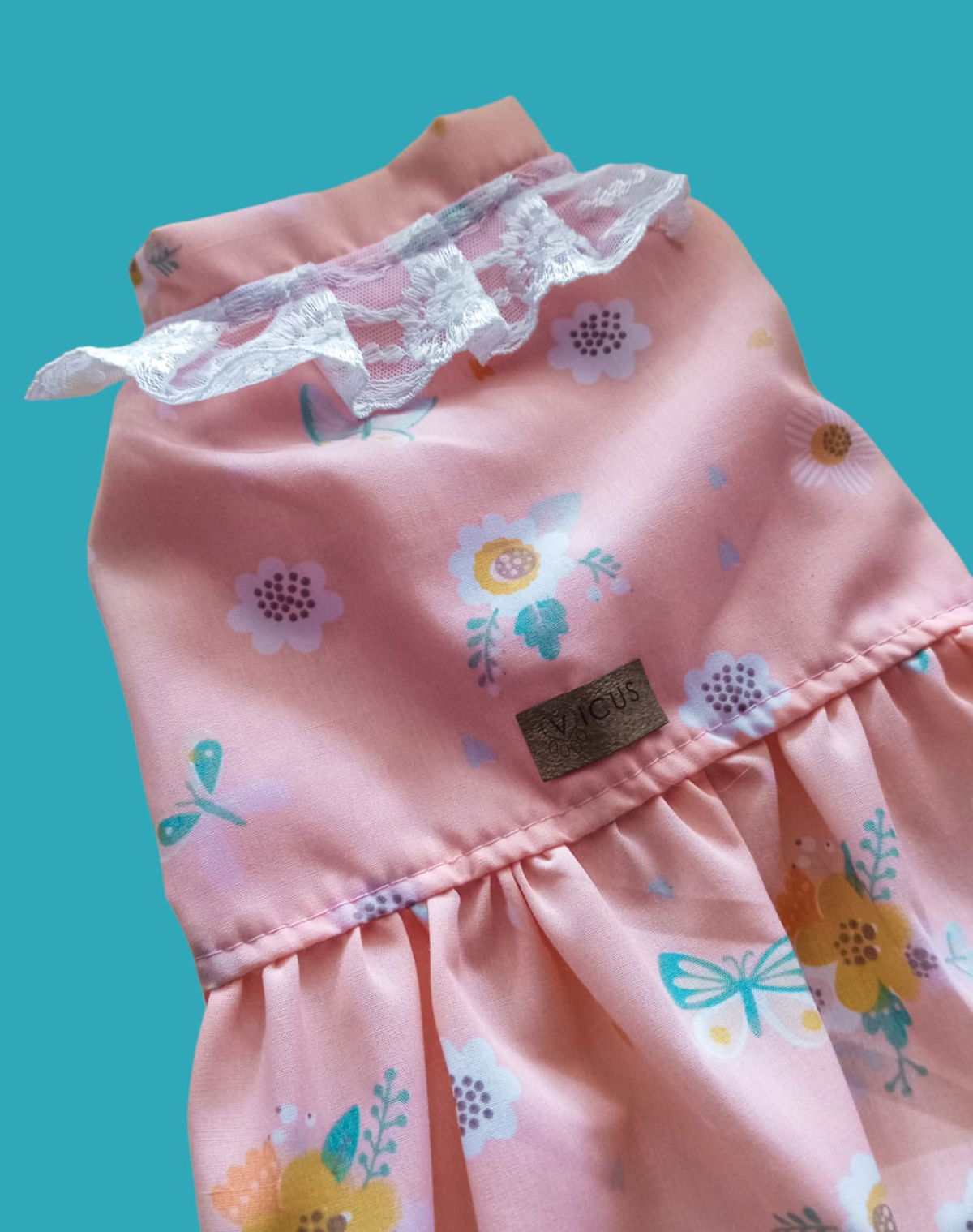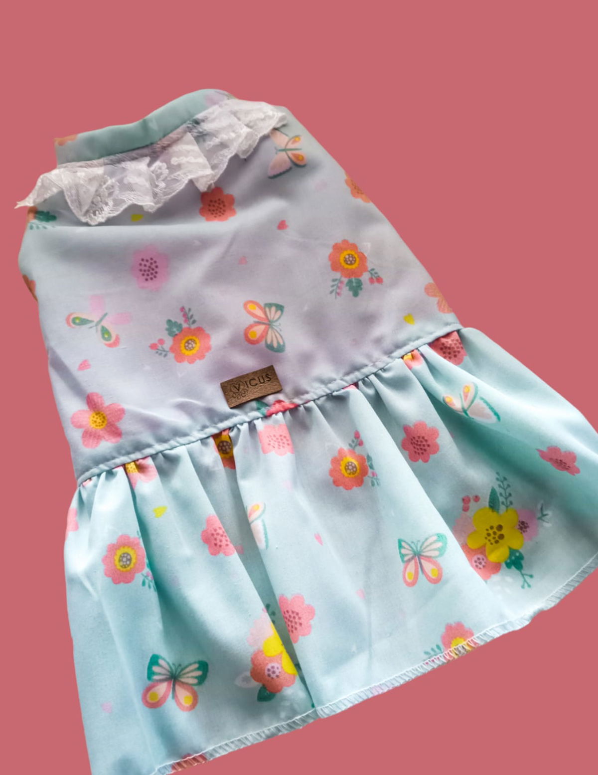 Transforma a tu mascota en una fashionista con nuestro vestido floreado. Con un cuellito en puntilla, este vestido es la elección perfecta para un look encantador??✨
