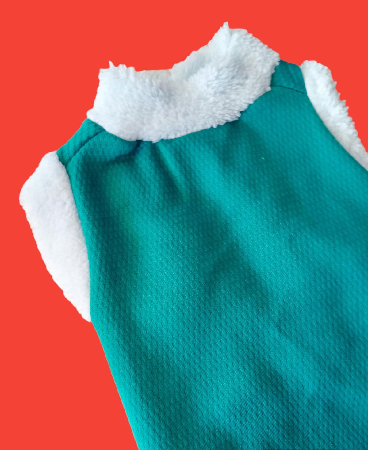 Dale a tu mascota un toque de glamour con las poleras de friza con cuello y mangas en corderito.